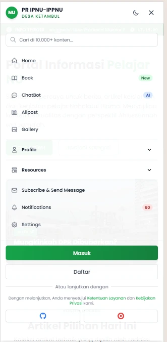 Saya akan menjelaskan seluruh tentang Website IPNU-IPPNU Desa Ketambul baik itu dari fitur maupun menu yang bisa teman-teman jelajahi, dilihat dari kacamata layar Mobile / Handphone